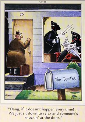 Конечно, читатели считают, что они почти уверены, что приведут к ужасной смерти музею. Если читатель смеется в комнате, вы должны знать темную судьбу персонажей на сцене, добавив трагическую сатиру. Есть такая шутка Удалить страницу Гэри Ларсон сделал мультфильм, который слишком много ведет, что делает его длинным и идеальным сочетанием этой комедии.